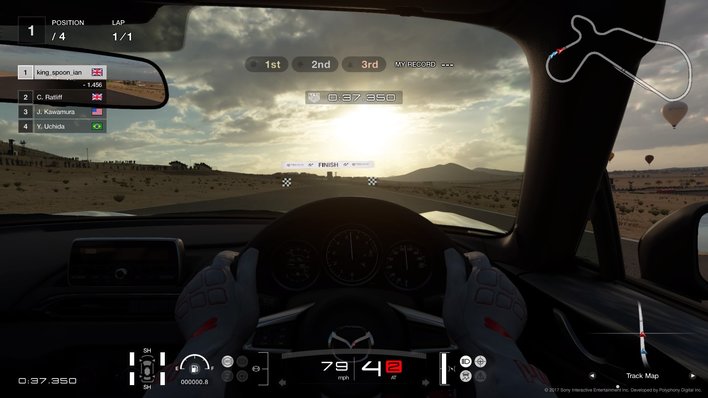 Of course, that in itself could be because GT Sport's interface seems to hugely focus on style over substance. With miniscule fonts, awkwardly labelled hidden menus, and a car shop that spends longer telling you about the history of the brand than it does what you can actually buy, it's all a bit higgledly piggledy, to say the least. The loading times here are also rather lengthy, too, with the game often leaving you sat for a good thirty seconds while the track loads in, with very little to do. In another of our pet hates, the game also features an odd HDR lighting system, which attempts to mimic the eye's reaction to bright light - by dimming everything else out. The only problem is, my eye can already do that, and having the game essentially make the track and background merge into one amorphous grey blob isn't the most helpful of things it can do as you're approaching a hairpin bend. Nor would it happen in real life, as you'd shift in your seat, squint, or wear your flipping sun glasses.