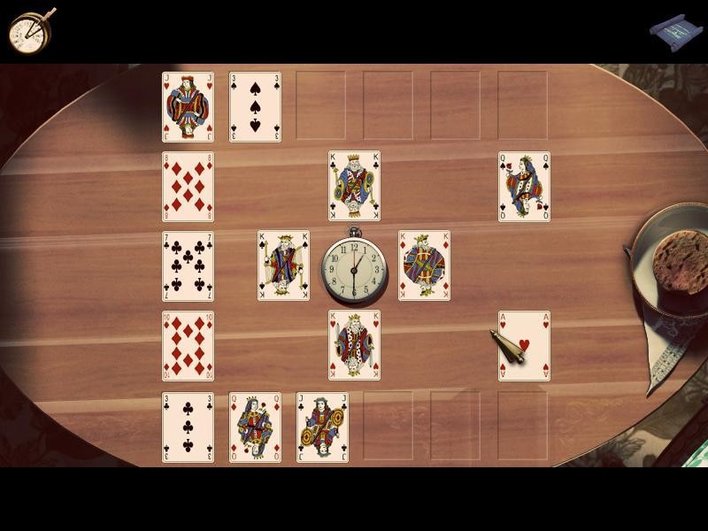 But despite it being fine for the most part, not too far into your journey on board the ship, there are a few puzzles that don't really seem to make an awful lot of sense. The first one we struggled with was one where you were presented with a clock, surrounded by four kings and three piles of cards on each side of it. All you had to go by was a rather cryptic explanation, telling you to use the clock to 'move the cards'. Not phenomenally helpful. So after scratching our heads for a bit (and a spot of googling), we finally worked out that you need to move the card with the same number on it as the number the hour hand points to on the clock. But where do you move it to? There's a series of slots top and bottom, and the one you move it into is dependant on which way the red hand is pointing - whether it's up or down.