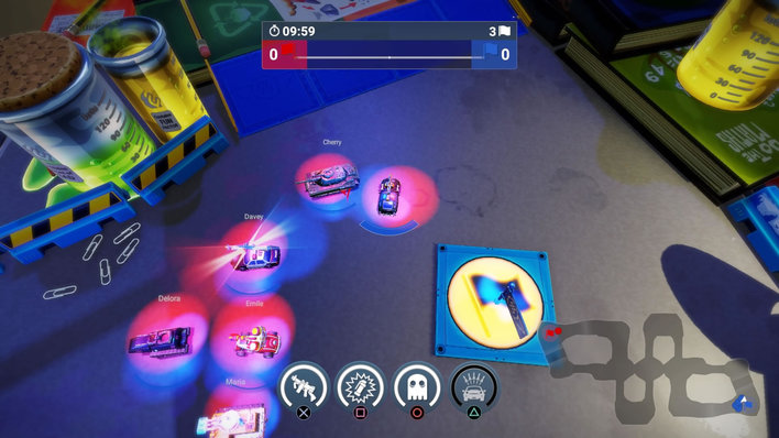 If there's one thing we've learnt over the years with games, it's that appearances can often be rather deceiving - and that's certainly true with Micro Machines. With support for four player local multiplayer (or up to a dozen players online), and a host of new, intricately themed tracks to burn rubber around, whether you're racing through a garden, jumping through a toaster, or skidding round a snooker table, everything here at least looks the part. There's even a bit of variety to the gameplay too, with standard races supplemented by a Battle mode, which sees you take on opponents in either a straight deathmatch, capture the flag, or bomb battle (get the bomb to the enemy base), while Elimination challenges you to be the last one left on screen - if you lag too far behind, you'll be deleted. But the more you play, the more problems you'll discover, and the more Micro Machines will start to feel like it's lacking.