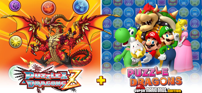 We don't know about you, but there's two games in particular that we find can eat up way too many hours of our time - Pokemon and Bejeweled. Whether it's our infamous 460 hour save on Pokemon Pearl or having maxed out our level on the Xbox 360 version of Bejeweled Blitz, our love of the two games borderlines on obsessive. And with their latest game for the 3DS, Nintendo have aimed their sights squarely at our free time, with a double pack of games best described as the product of a steamy love affair between Pokemon and Bejewelled - the dragon themed Puzzle & Dragons Z, and their own Mario-inspired take on the formula, the inventively titled Puzzle & Dragons Z: Super Mario Bros. Edition.