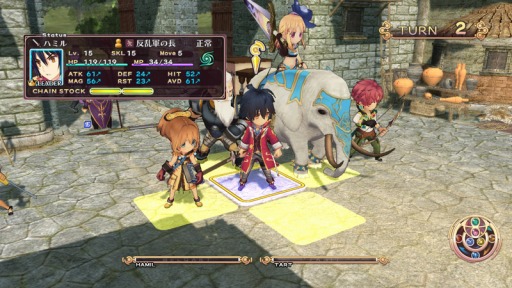 Battles occur at certain points in the story, usually after an hour or so of wading through dialogue. Strategic and turn-based, characters sit on a grid-like battleground taking it in turns to attack. Each turn, you can choose to move your characters around the map, placing them in strategic positions to attack the enemy, use items or cast magic, before passing play over to your opponent. Where you position your troops matters too, given that a 'zone of control' forms around each of your forces, and (when grouped fairly close together) actually prevents the enemy from passing through - letting you shield your weaker characters without worrying about someone sneaking round the back. As enemies are defeated, the character that laid the final blow gains experience, levelling up and becoming more powerful - but, in a bit of a twist, you'll actually want to be careful here that they don't get too powerful, as the game will give you a bit of a penalty on the final results screen for being 'overlevelled'. Although, as your rank for each stage is in no way crucial to your progress (except for a single trophy), you may not care.